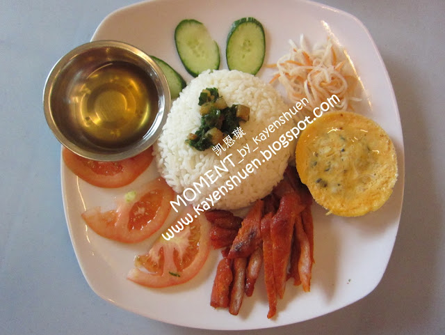 | 友人的,排骨饭吧?我忘了实际名称和价钱。呵呵。 乍看照片是觉得说有点干干的。lol。就靠那小碗的鱼露酱汁调味而已。没什么特别。就干干干的说。嘻嘻。不过呢。。。 |